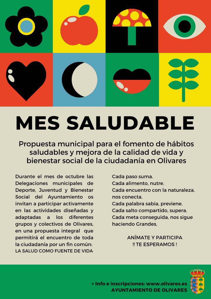 Las Delegaciones de Juventud, Deporte y Bienestar Social han diseñado y planificado un programa de actividades completo y variado con el objeto de promover hábitos de vida saludables y contribuir a la mejora de la calidad de vida y bienestar social en Olivares.