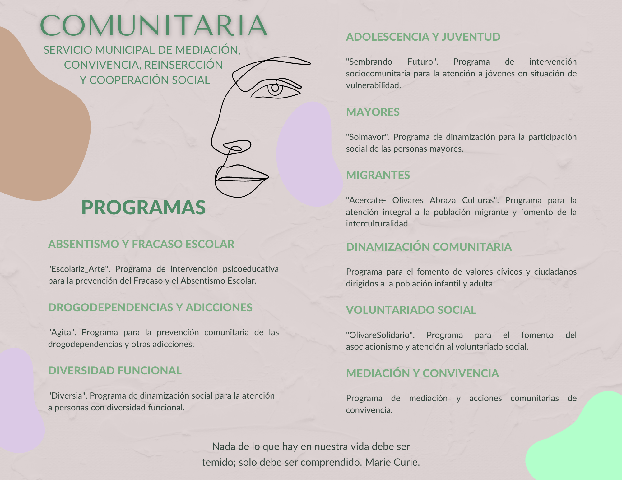 Con el fin de atender las demandas, sugerencias y propuestas de determinados colectivos de la localidad, desde los servicios sociales comunitarios se pretende ofrecer “Mucho Más”. Una nueva puerta de entrada para la atención de la inclusión y participación social de colectivos en situación de vulnerabilidad desde la equidad, la conciencia social y la igualdad de oportunidades.