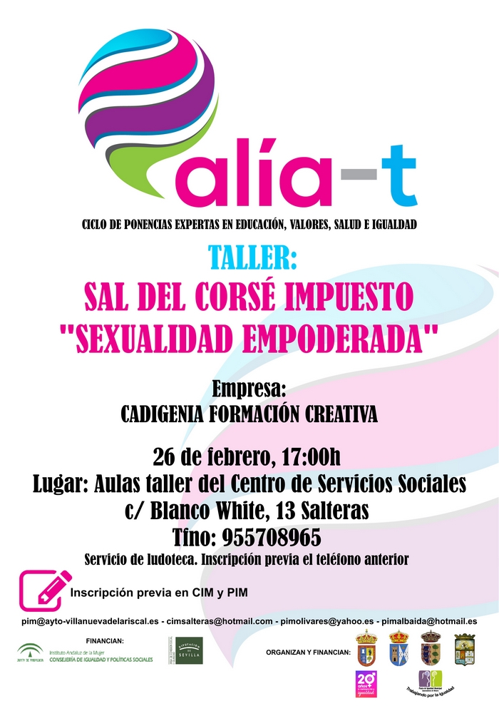 Mañana día 26 de febrero comenzará la primera sesión del ciclo de ponencias expertas en Educación, Valores, Salud e Igualdad "Alia-T" titulada: Sal del corsé impuesto "Sexualidad empoderada".