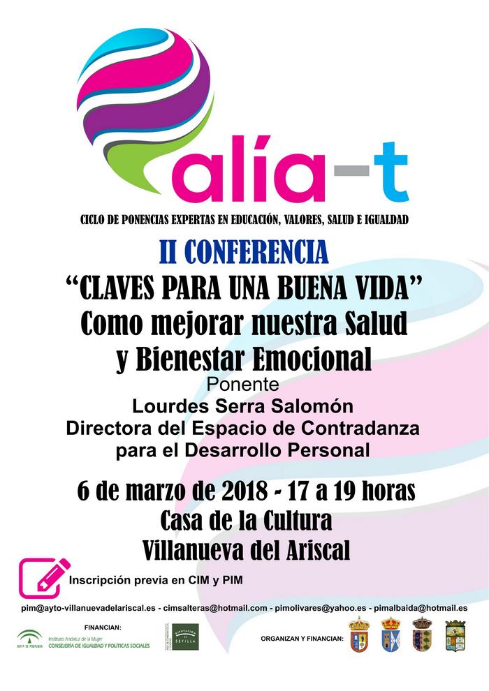 El próximo día 6 de marzo de 2018, tendrá lugar la II Sesión del Ciclo de Conferencias expertas del proyecto Aliate: "Claves para una buena vida. Cómo mejorar nuestra salud y bienestar emocional".