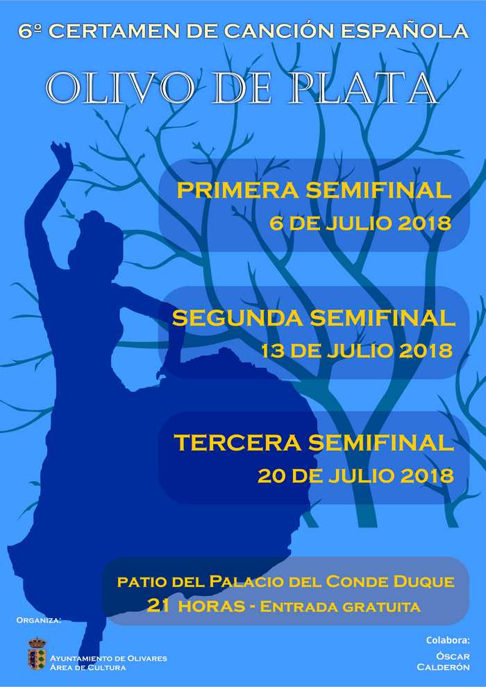Las Semifinales del VI Certamen de Canción Española "Olivo de Plata" se celebrarán los días 6, 13 y 20 de julio, a las 21:00 en el patio del Palacio del Conde Duque y la entrada será gratuita.