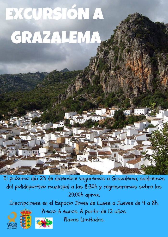 El próximo 23 de diciembre viajaremos a Grazalema, saldremos del Polideportivo Municipal a las 8:30 horas y regresaremos sobre las 20 horas.