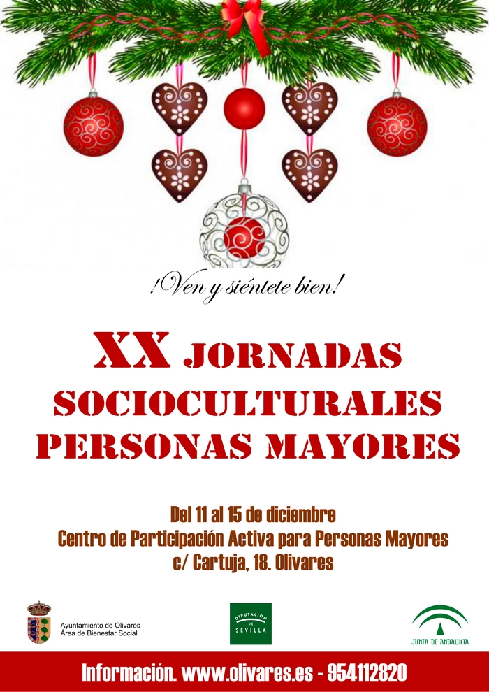 El Área de Bienestar Social del Ayuntamiento de Olivares celebra este año durante los días 11, 12, 13, 14, 15 de diciembre las XX Jornadas Socioculturales para personas Mayores y conmemora el 20 aniversario de las actividades y proyectos de Dinamización dirigidos a la población mayor.