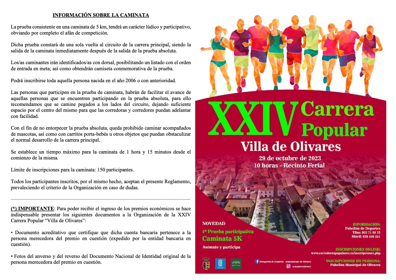 - Personalmente, en el Polideportivo Municipal de Olivares, en horario de 17:00 a 21:00 horas, de Lunes a Viernes a partir del 18 de Septiembre de 2023