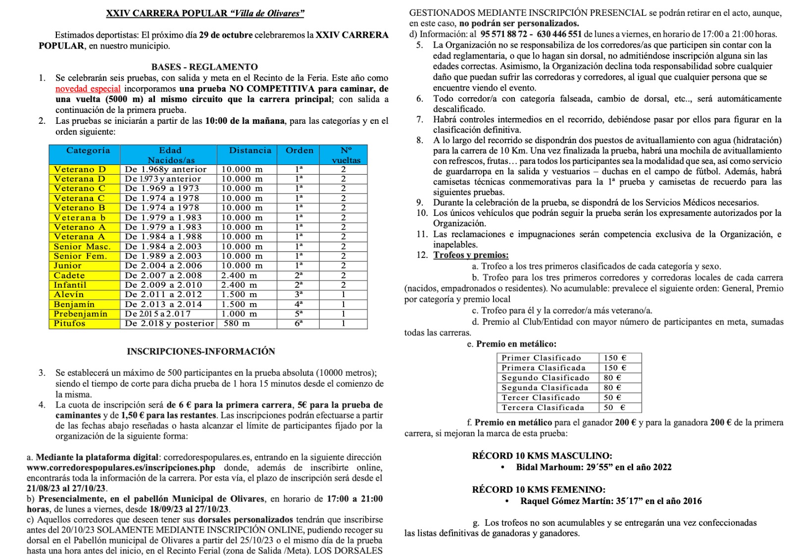 - Mediante la plataforma digital: corredorespopulares.es, entrando en la siguiente dirección www.corredorespopulares.es/inscripciones.php, donde, además de inscribirte online, encontrarás toda la información de la carrera. El plazo de inscripción en la plataforma está abierto desde el 22 de Agosto de 2023.