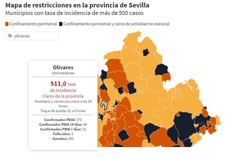 OLIVARES SUPERA LA TASA DE CONTAGIOS DE 500 CASOS POR CADA 100.000 HABITANTES, LO QUE DERIVARÁ EN UN PRÓXIMO CIERRE PERIMETRAL DEL MUNICIPIO