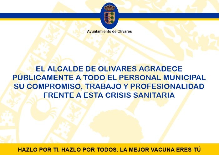EL ALCALDE DE OLIVARES AGRADECE PÚBLICAMENTE A TODO EL PERSONAL MUNICIPAL SU COMPROMISO, TRABAJO Y PROFESIONALIDAD FRENTE A ESTA CRISIS SANITARIA