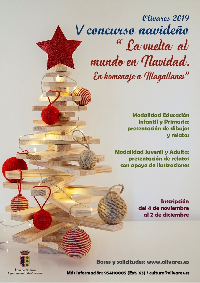 La Delegación de Cultura del Ayuntamiento de Olivares, con motivo de la Navidad, convoca la Quinta Edición del Concurso Navideño de Dibujos y Relatos: "LA VUELTA AL MUNDO EN NAVIDAD. EN HOMENAJE A MAGALLANES".