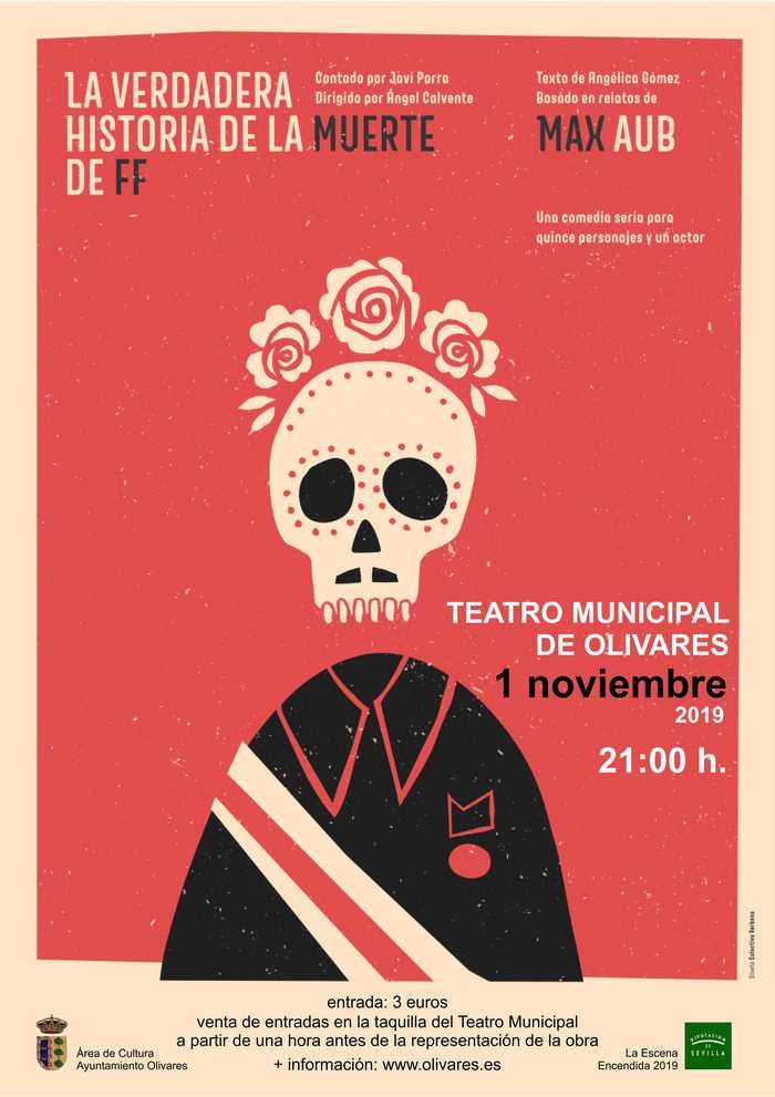 El viernes 1 de noviembre se representará en el Teatro Municipal de Olivares, a las 21 horas "La verdadera historia de la muerte de FF" basada en relatos de Max Aub. Comedia seria para quince personajes y un actor sobre el drama de los refugiados españoles en el exilio. Entrada: 3 euros.