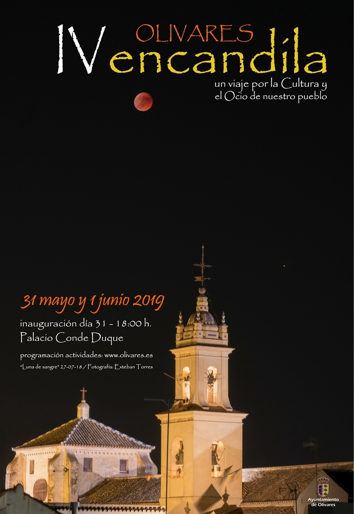 Los próximos días 31 de Mayo y 1 de Junio vuelve Olivares Encandila 2019. Un evento que organiza el Área de Cultura del Ayuntamiento de Olivares ya por cuarto año consecutivo, "un viaje por por el ocio y la cultura de nuestro pueblo", con una amplia programación, gratuita, y dirigida a todas las edades. Un proyecto que cuenta con la genialidad de la participación e implicación de las distintos espacios municipales, grupos y entidades, personal monitor y artistas, entre otros, de nuestro municipio.