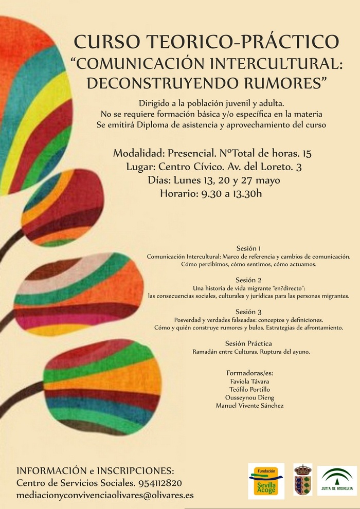 El próximo lunes 13 de mayo dará comienzo el Curso de Formación Teórico-práctico "COMUNICACIÓN INTERCULTURAL: DECONSTRUYENDO RUMORES" dirigido a la población juvenil y adulta.