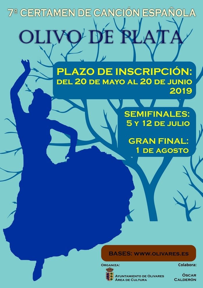 El Ayuntamiento de Olivares hace pública las Bases para la participación en el VII Certamen de Canción Española "Olivo de Plata". La convocatoria estará abierta desde el día 20 de mayo al 20 de junio de 2019.