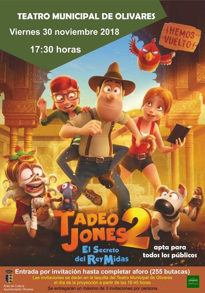 El viernes 30 de noviembre, en el Teatro Municipal de Olivares, a las 5:30 de la tarde, se proyectará la película TADEO JONES: EL SECRETO DEL REY MIDAS.