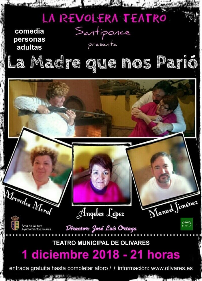 El grupo de teatro aficionado La Revolera Teatro presenta, en el Teatro Municipal de Olivares, el sábado 1 de diciembre, a las 21 horas, la obra "La madre que nos parió". Entrada gratuita hasta completar aforo. Comedia personas adultas.