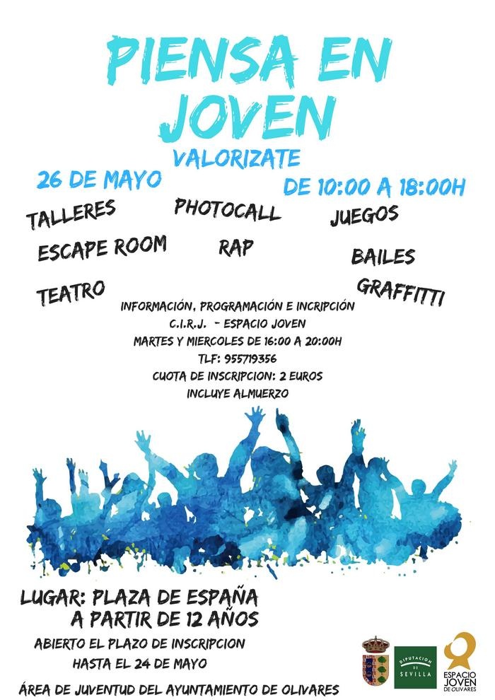 El sábado 26 de Mayo, bajo el lema "Piensa en Joven" tuvo lugar en nuestro municipio el V Encuentro Comarcal de Jóvenes, organizado por el Área de Juventud y en el que acudieron jóvenes de Olivares, Albaida del Aljarafe, Salteras, Villanueva del Ariscal, Espartinas y Sánlucar la Mayor.