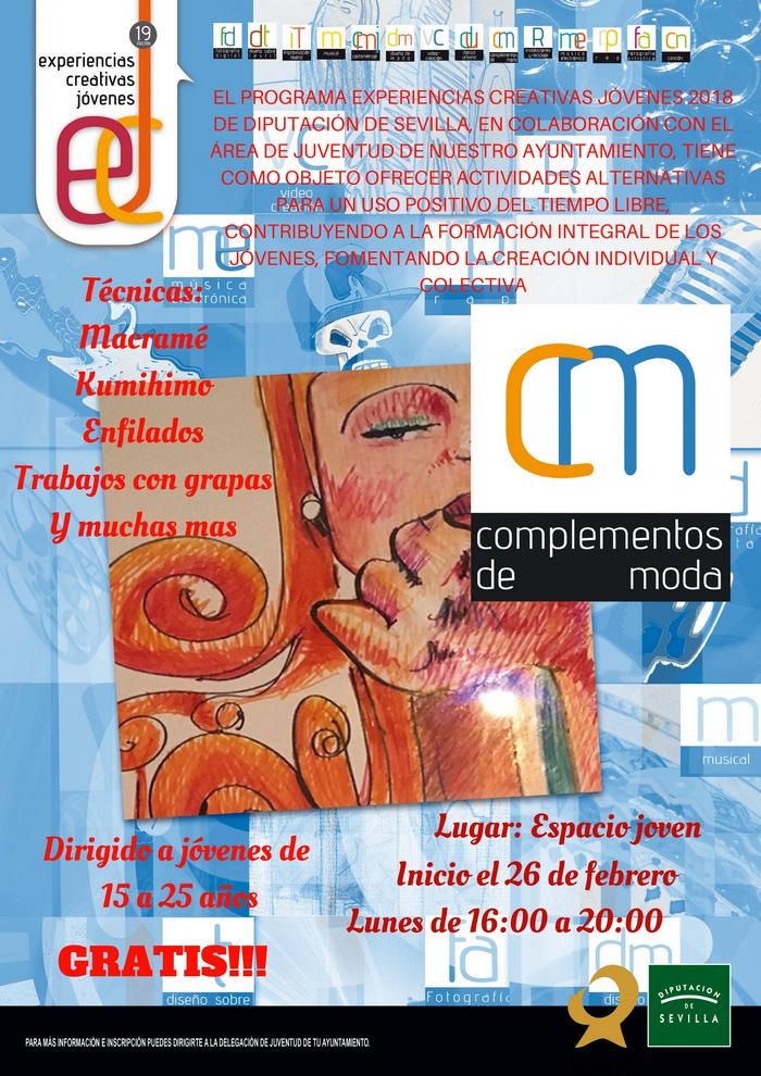 El programa Experiencias Creativas Jóvenes 2018 de Diputación de Sevilla en colaboración con el Área de Juventud de nuestro Ayuntamiento tiene como objeto ofrecer actividades alternativas para un uso positivo del tiempo libre, contribuyendo a la formación integral de los jóvenes, fomentando la creación individual y colectiva.