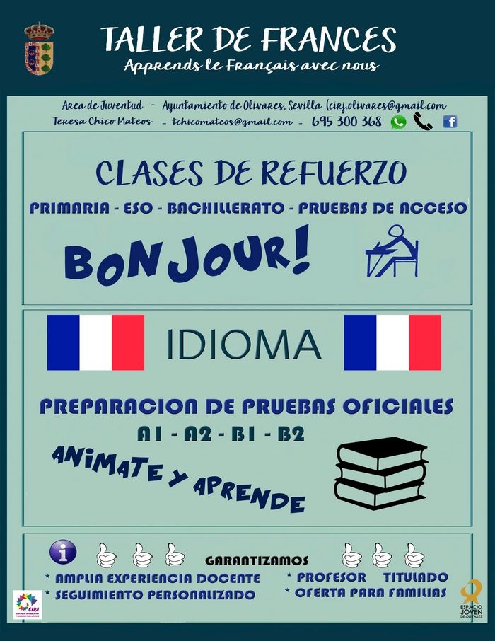 Desde el Área de Juventud del Ayuntamiento de Olivares se pone en marcha dos nuevos cursos: Lengua de signos (todas las edades) y Clases de francés (todos los niveles). Comenzamos en Octubre.