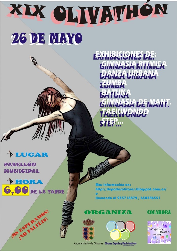 El próximo viernes 26 de mayo tendrá lugar una de las actividades deportivas más multitudinarias de las que vivimos todos los años en nuestro municipio: EL XIX OLIVATHÓN "VILLA DE OLIVARES".