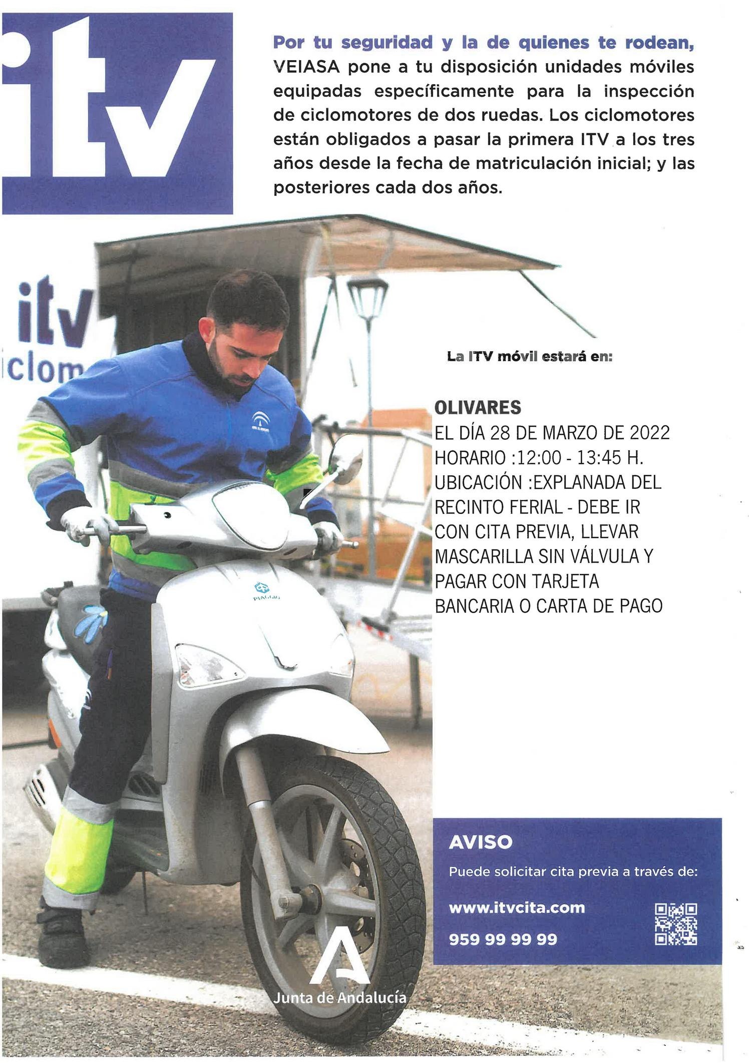 LA ITV MÓVIL SE ENCONTRARÁ EN OLIVARES EL DÍA 28 DE MARZO DE 2022