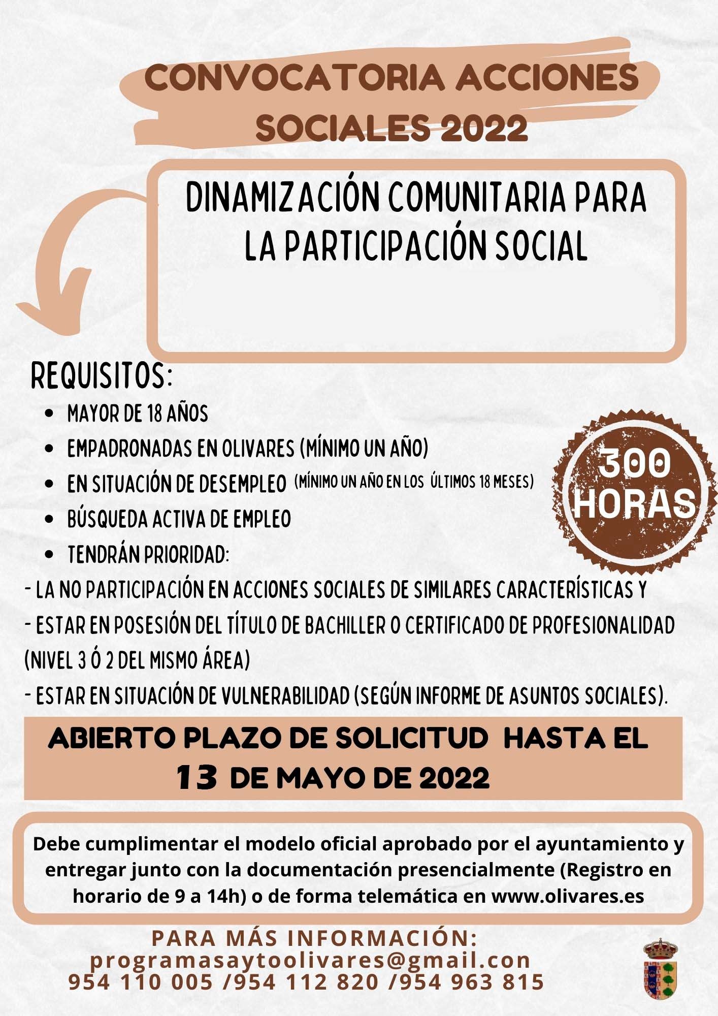 [AMPLIADO EL PLAZO] Acción Social de Dinamización Comunitaria para la Participación Social