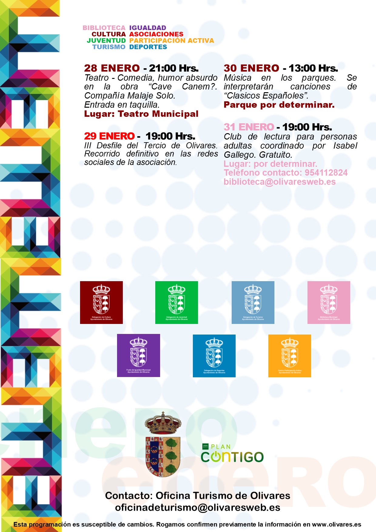 Boletín de actividades culturales del Ayuntamiento de Olivares del mes de enero de 2022.