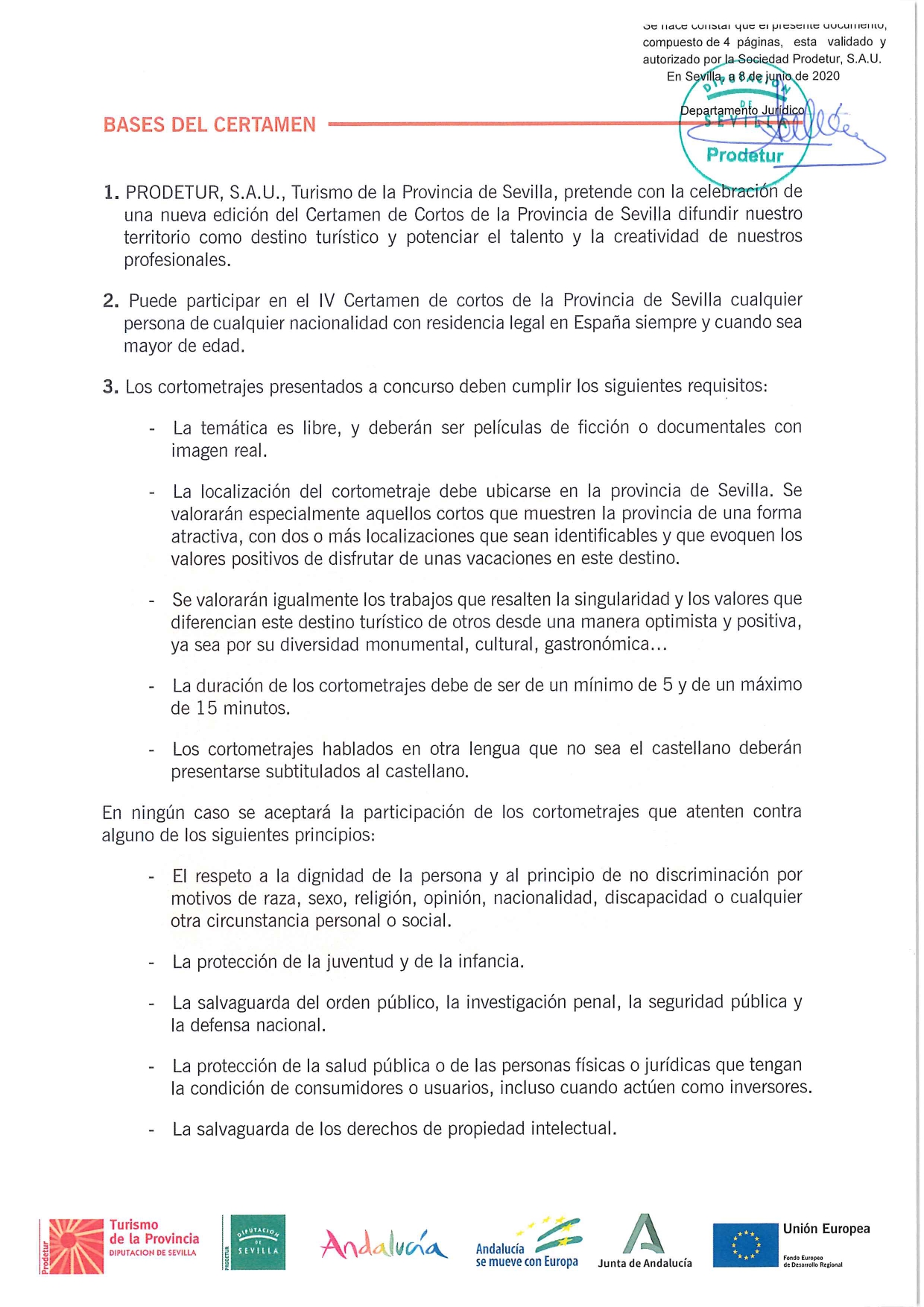 La Diputación Provincial de Sevilla, a través de su sociedad provincial PRODETUR, S.A.U., organiza una nueva edición del Certamen de Cortos de la Provincia de Sevilla. Esta es la cuarta edición, con la que se pretende difundir nuestro territorio como destino turístico y potenciar el talento y la creatividad de nuestros profesionales.
