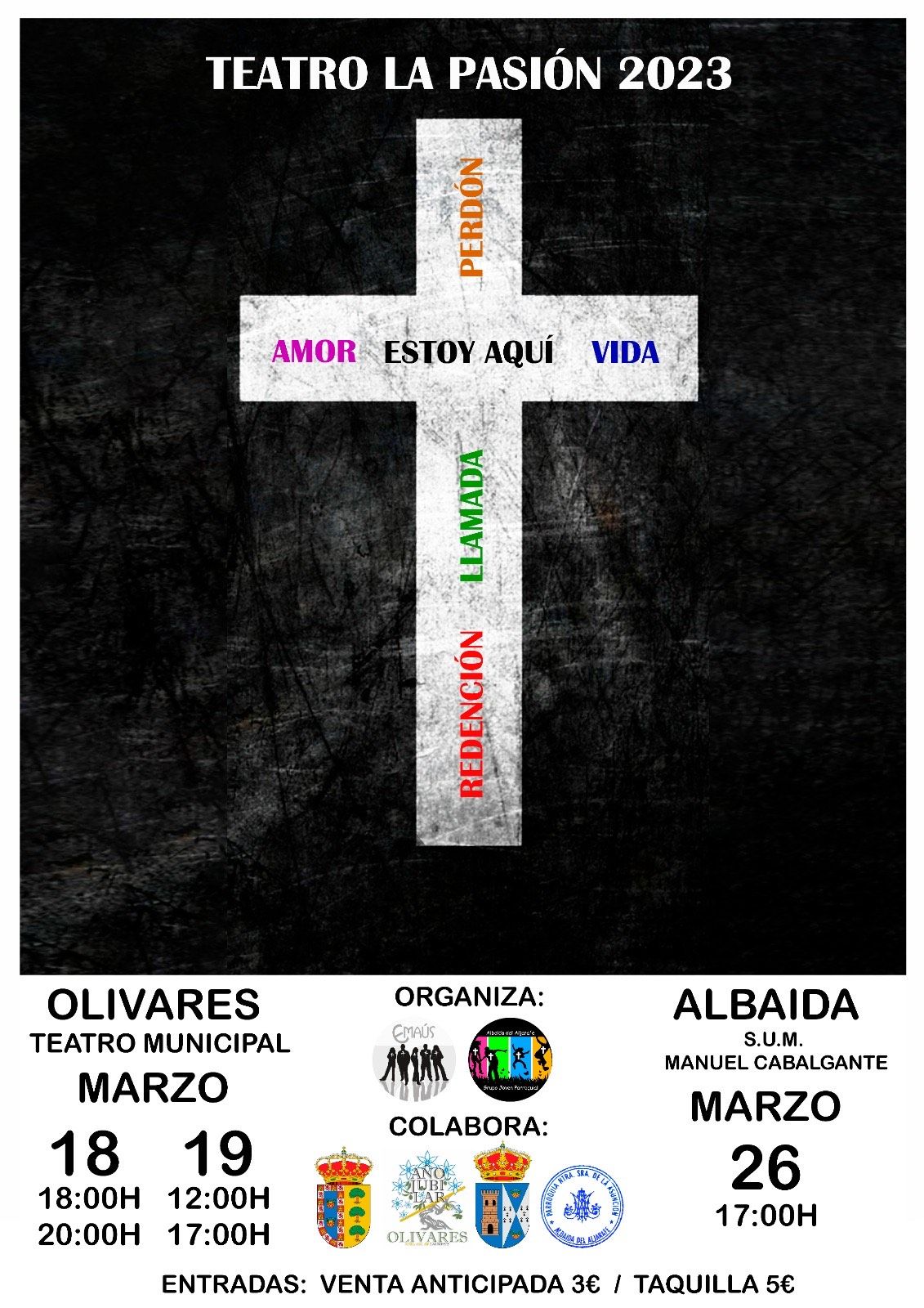 Un año más el grupo Emaus de Olivares, y el Grupo Joven parroquial de Albaida nos hemos unido, llamados por una misma fé, para traer a la vida la pasión de Cristo con el toque actual que nos caracteriza. Si quieres vivir esta experiencia única con nosotros no te lo pierdas ¡Las entradas ya están a la venta!.