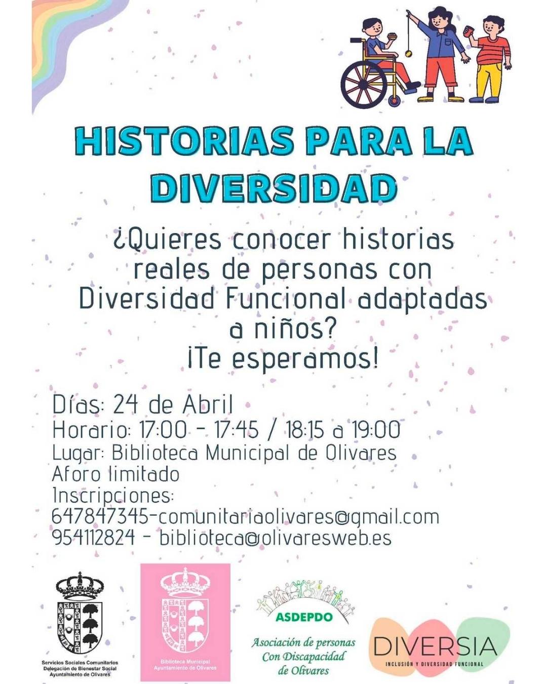 - A las 18:15 horas tenemos "Historias para la diversidad", actividad en la que Rafael y Fernando compartirán con nosotros su historia de vida. En colaboración con el Área de Servicios Sociales y con la Asociación ASDEPDO.