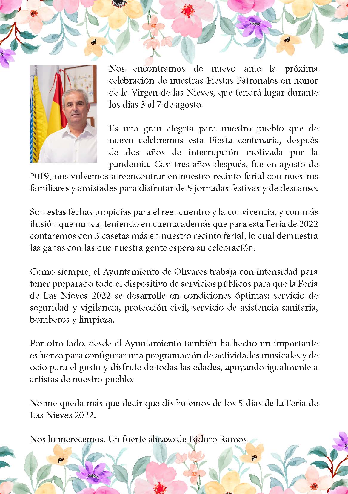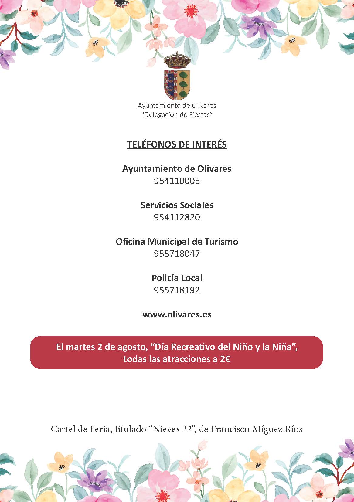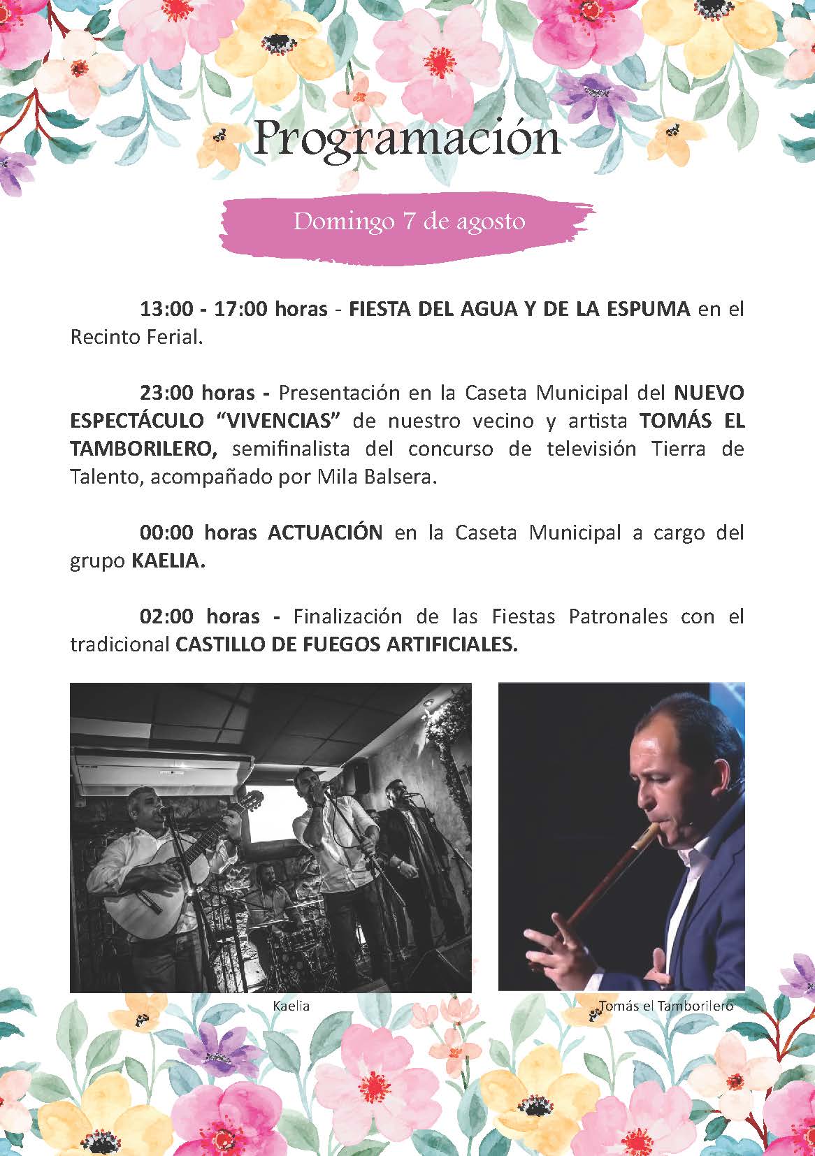 Revista tradicional de Feria, donde se podrá ver todas las actuaciones y actividades que se realizarán en el recinto ferial del 3 al 7 de agosto en honor a nuestra Patrona.