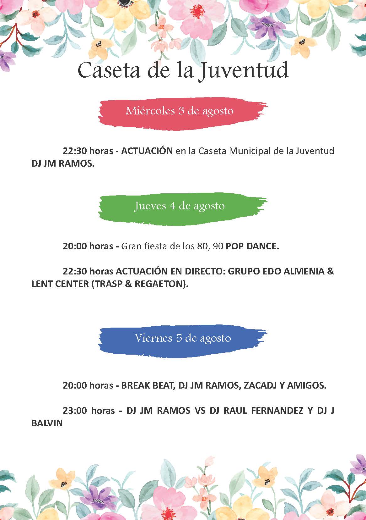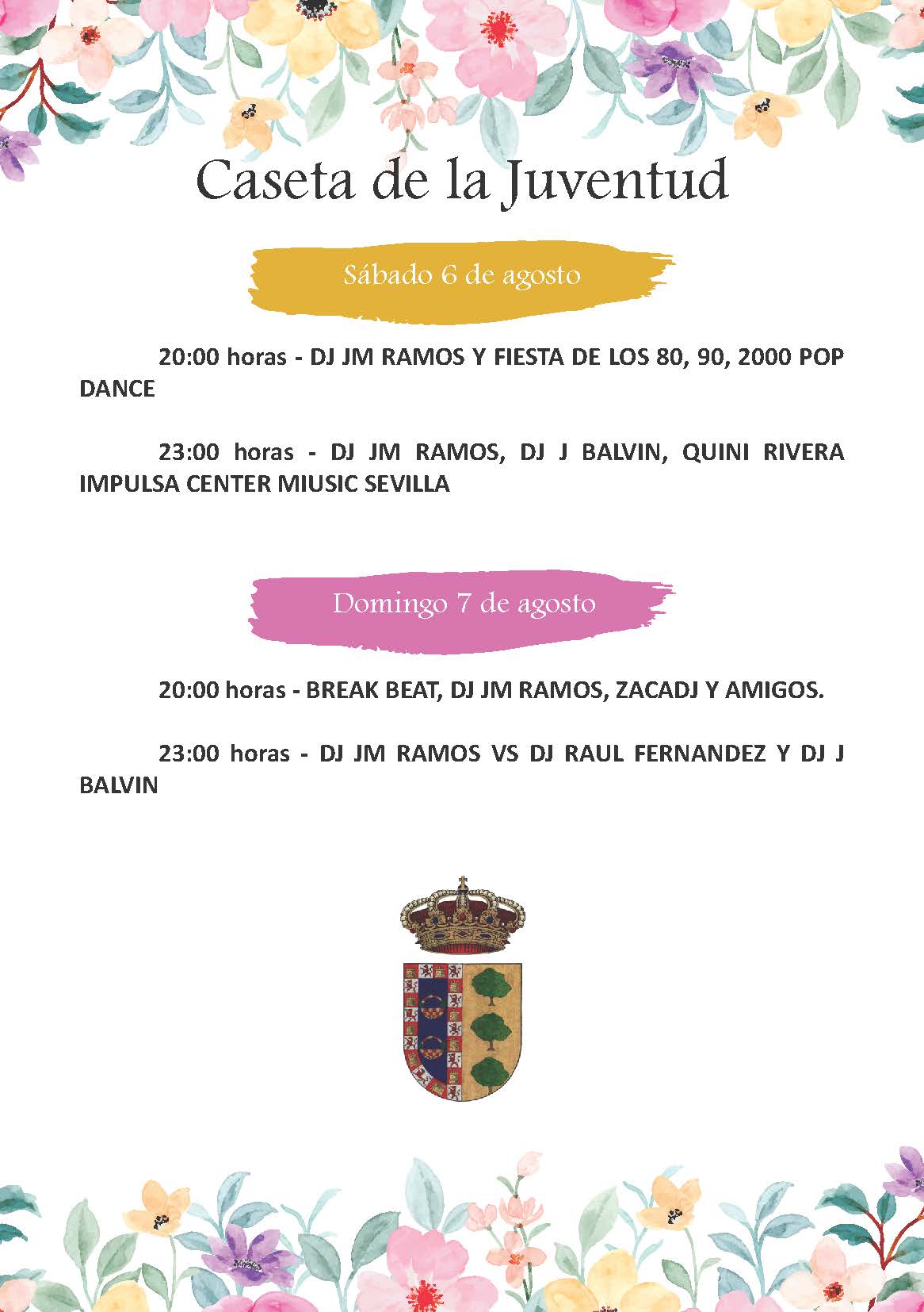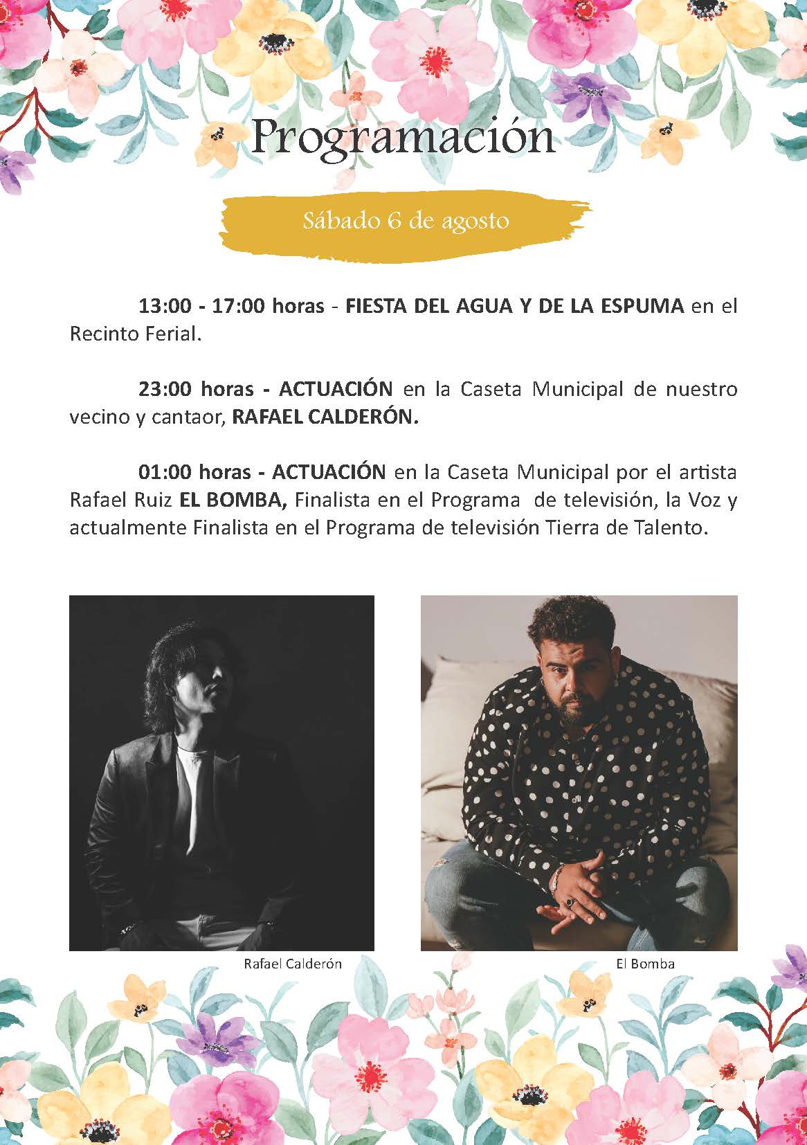 Tras dos años sin nuestra Feria, la Delegación de Festejos, ha trabajado duro para poder ofrecer una programación y unas actividades que abarquen a todo el público, por supuesto no podrán faltar en estas fechas tan calurosas nuestras fiestas del agua, además de grandes actuaciones tanto en la Caseta Municipal como en la Caseta Municipal de la Juventud.