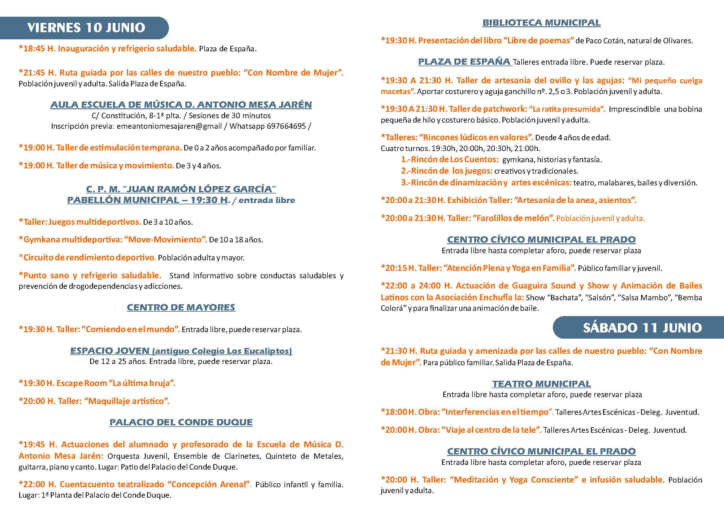 Programación del V Olivares Encandila. 10 Y 11 De Junio