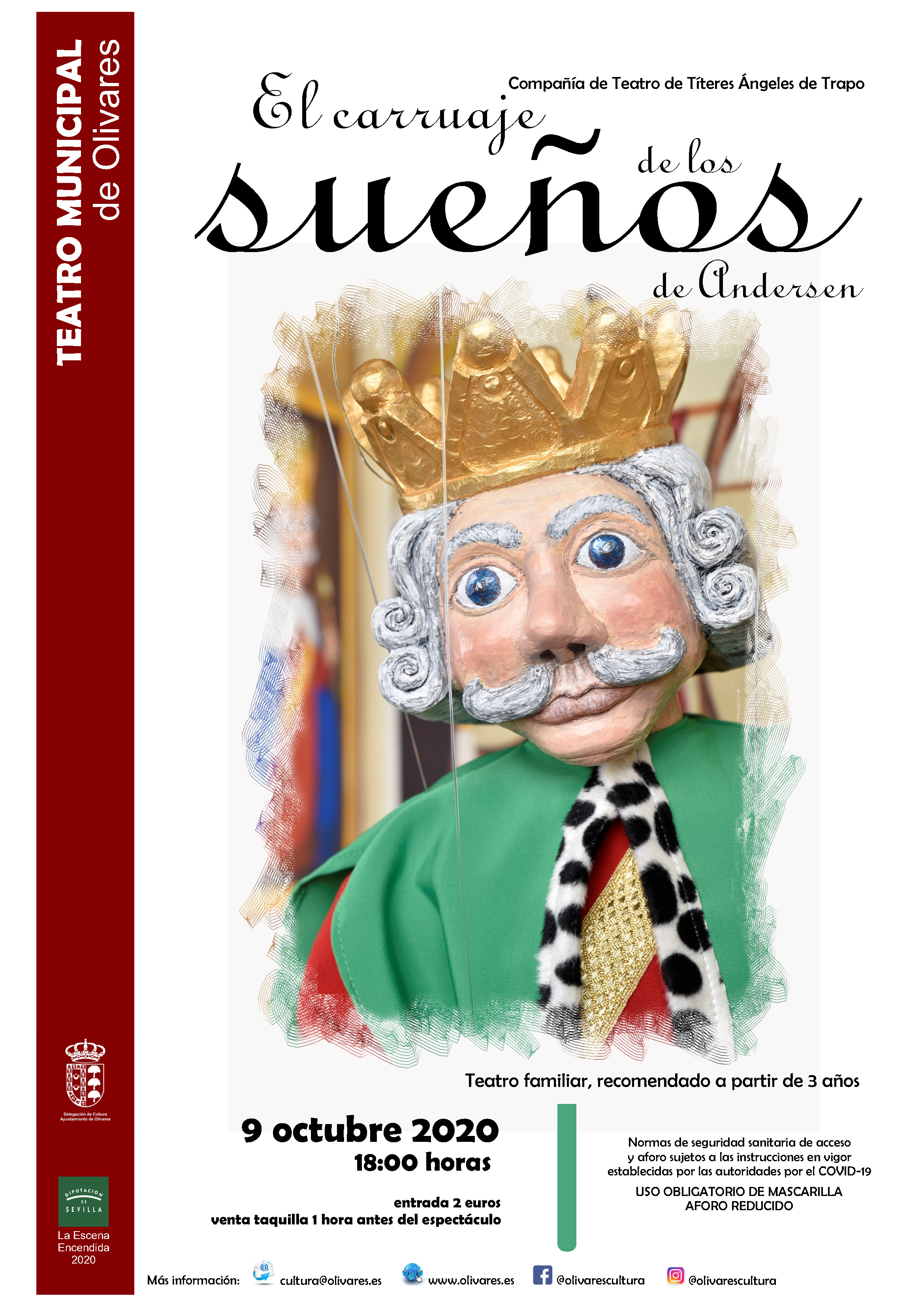 El viernes 9 de octubre , a las 6 de la tarde, en el Teatro Municipal de Olivares, la Cía Ángeles de Trapo representará la obra de teatro familiar y recomendada a partir de 3 años “El carruaje de los sueños de Andersen”.