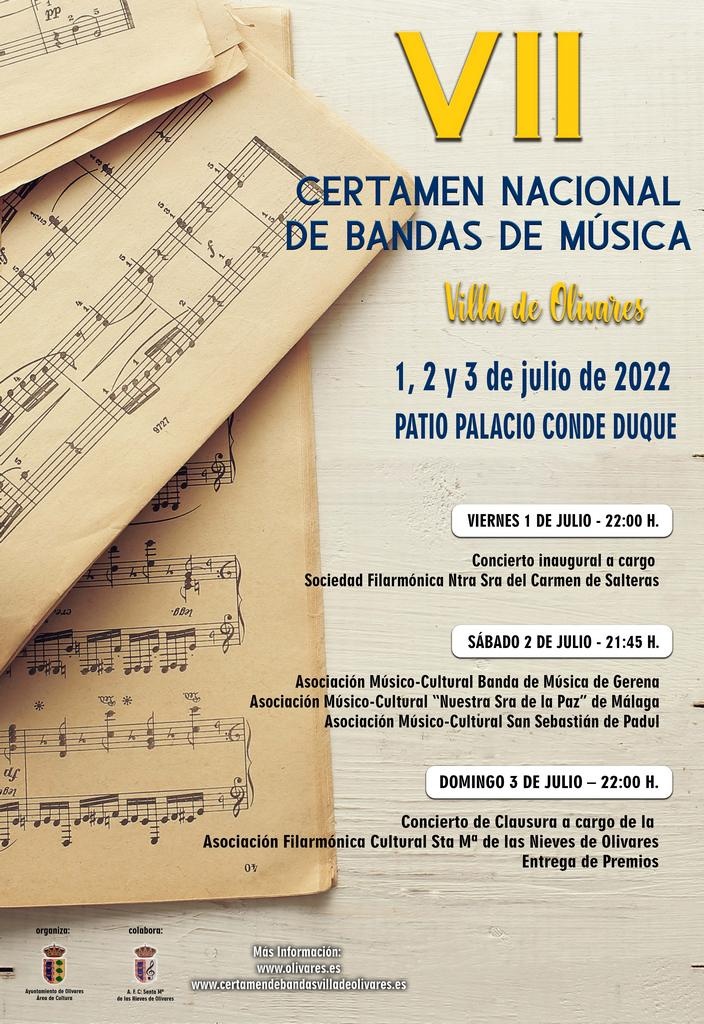 Cartel y programación de actividades del VII Certamen Nacional de Bandas de Música Villa de Olivares