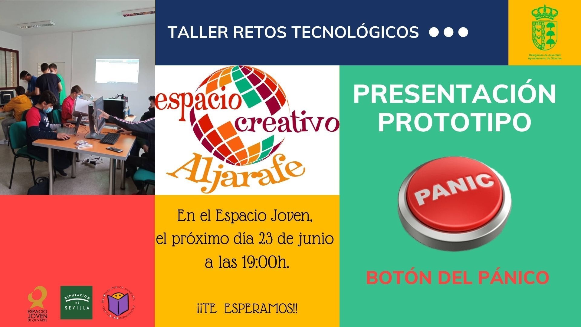 El miércoles 23 de junio, las 19:00h., tendrá lugar la presentación del prototipo del BOTÓN DEL PÁNICO DE NETFLIX creado por el grupo de Retos Tecnológicos del Espacio Creativo de Olivares. Lo haremos en el Espacio Joven y será el colofón de esta temporada 2020/2021.