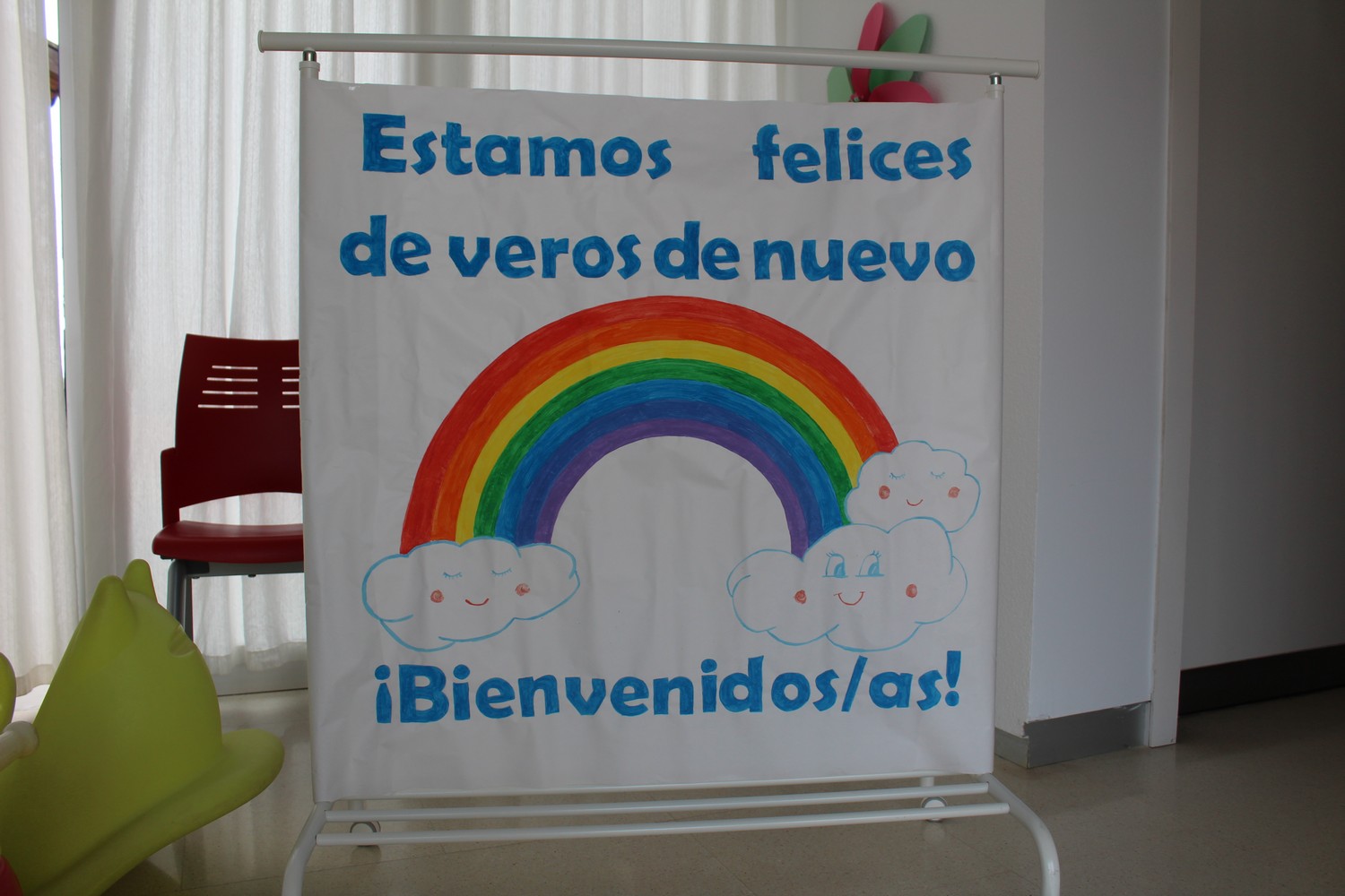 A pesar de ser un inicio de curso marcado por la Covid-19, las caras de felicidad y las sonrisas sobresalían detrás de las mascarillas del personal de la escuela que volvía a encontrarse con los/as más pequeños/as en esta nueva “vuelta al cole”. Ambas escuelas han sido adornadas con globos y carteles de bienvenida.