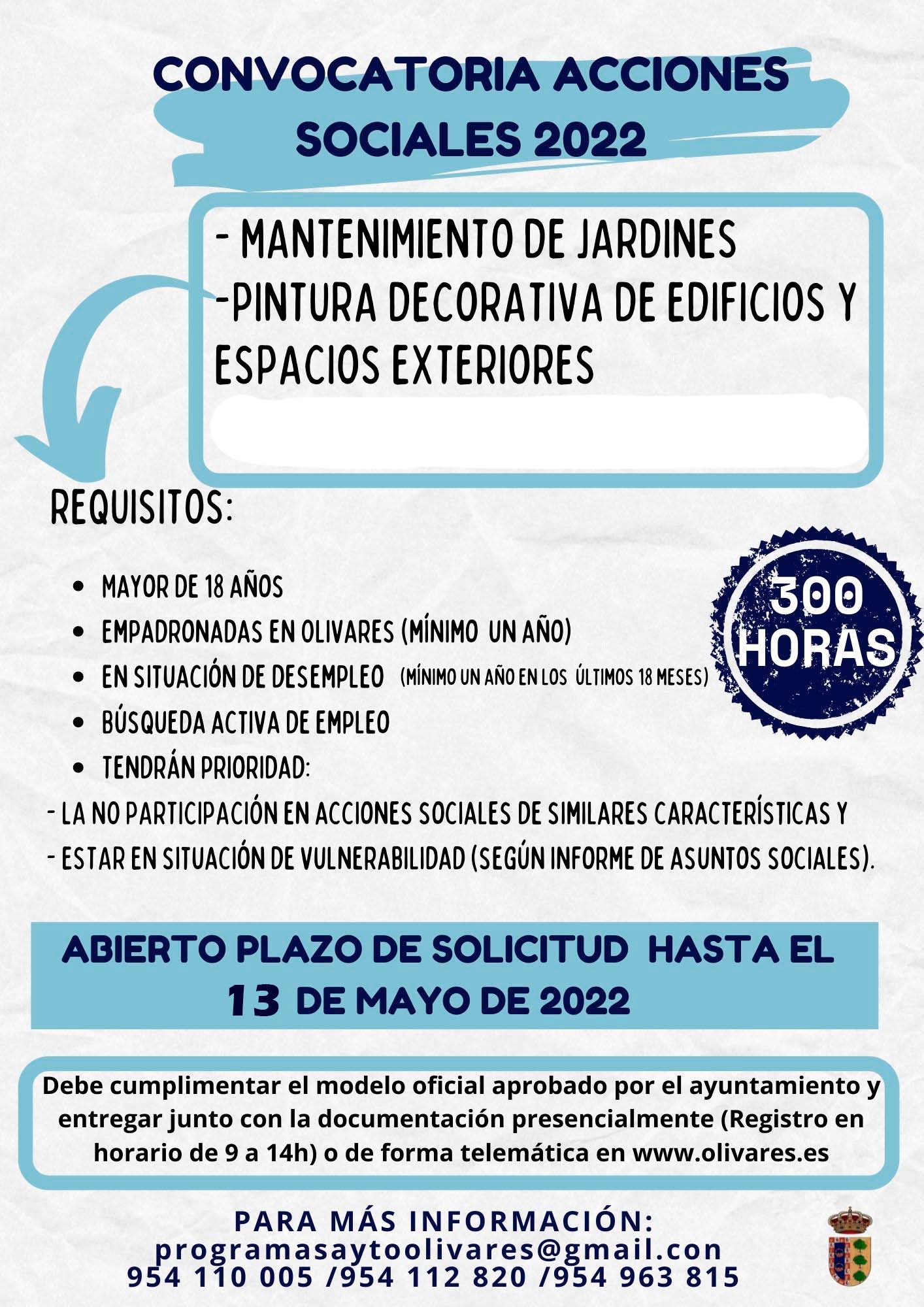 Se amplia el plazo de solicitud hasta el 13 de mayo de 2022 incluido. Ambas acciones cuentan con 300 horas.