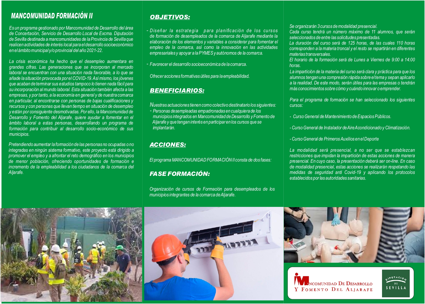 Dichos Programas se denominan Mancomunidad Formación I y II, y están destinados al colectivo de personas desempleadas que se encuentren empadronadas en cualquiera de los 31 municipios integrados en dicha Mancomunidad.