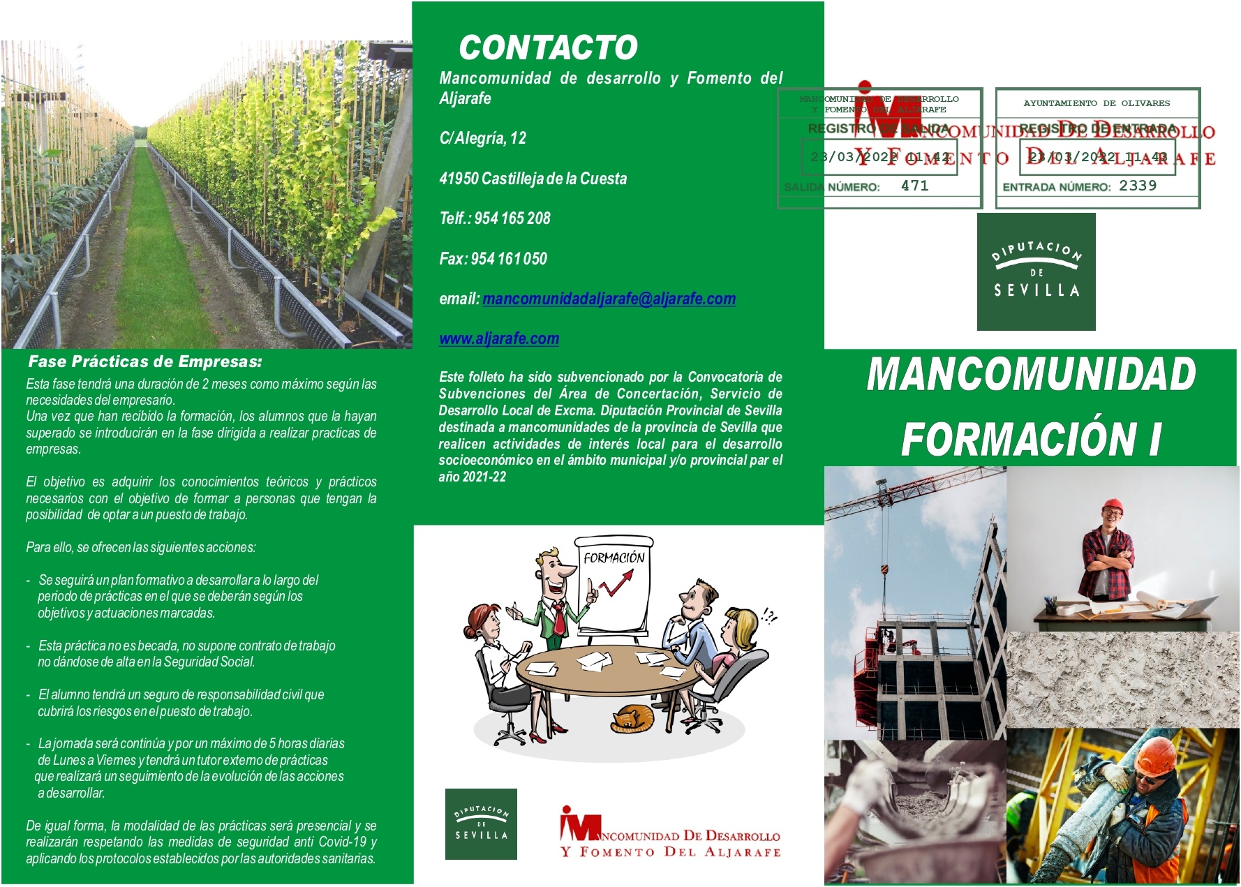 LA MANCOMUNIDAD DE DESARROLLO Y FOMENTO DEL ALJARAFE PONE EN MARCHA CURSOS FORMATIVOS BECADOS PRESENCIALES CON PRÁCTICAS NO REMUNERADAS EN EMPRESAS